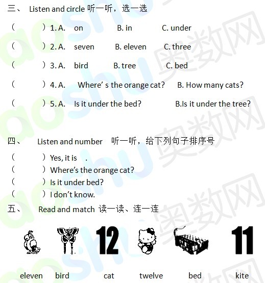 长沙小学一年级英语Book2单元测试题