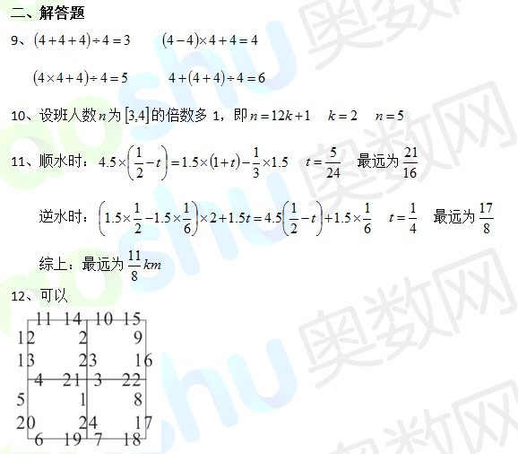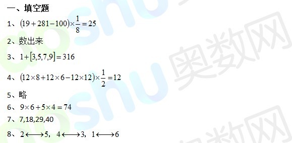 | 答案 | 25 | 2、3 | 316 | 12 | 62 | 74 | 94 | 54 |