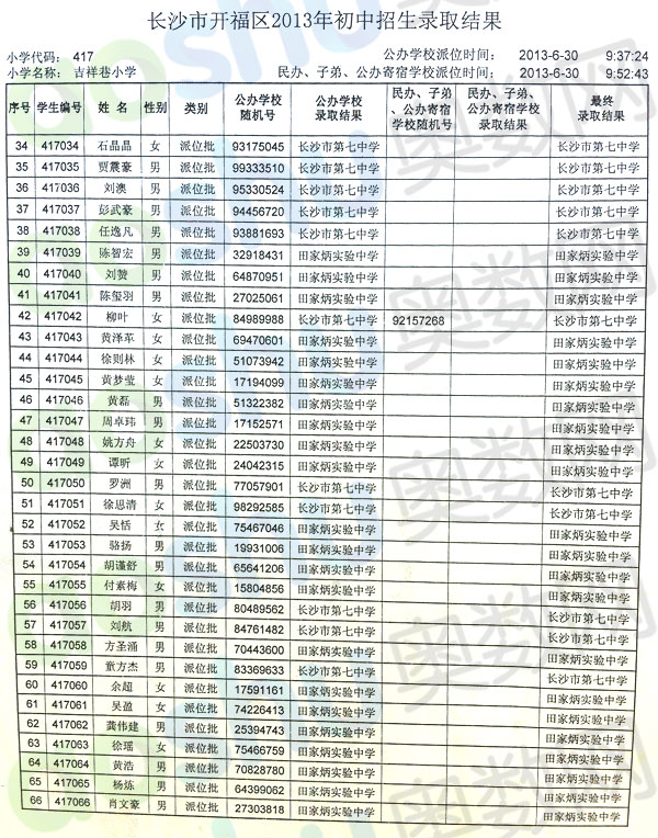 2013年长沙吉祥巷小学小升初微机派位录取结果(3)