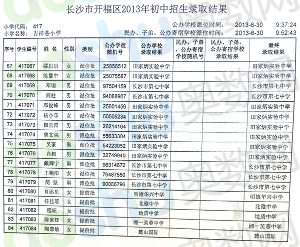 2013年长沙吉祥巷小学小升初微机派位录取结果(4)