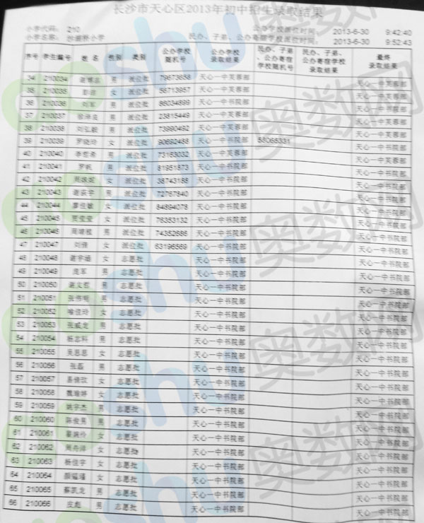 2013年长沙沙湖桥小学小升初微机派位录取结果(3)