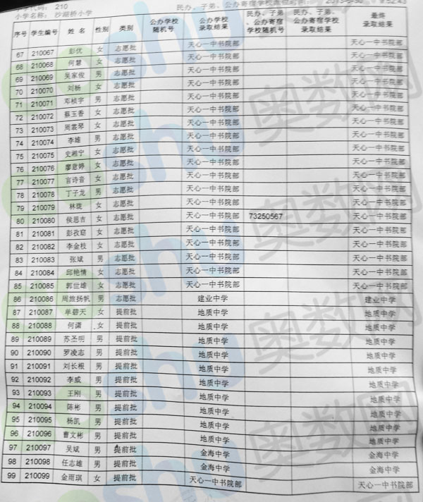 2013年长沙沙湖桥小学小升初微机派位录取结果(4)