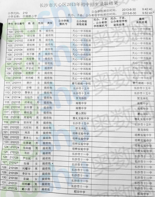 2013年长沙沙湖桥小学小升初微机派位录取结果(5)