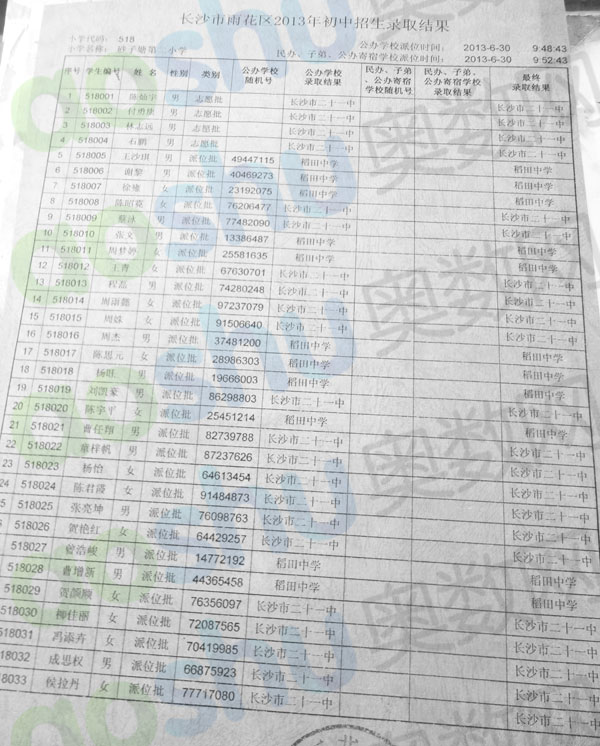 2013年长沙砂子塘二小小升初微机派位录取结果(2)
