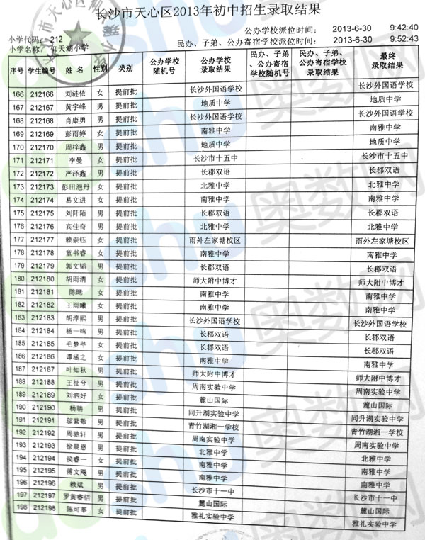 2013年长沙仰天湖小学小升初微机派位录取结果(7)