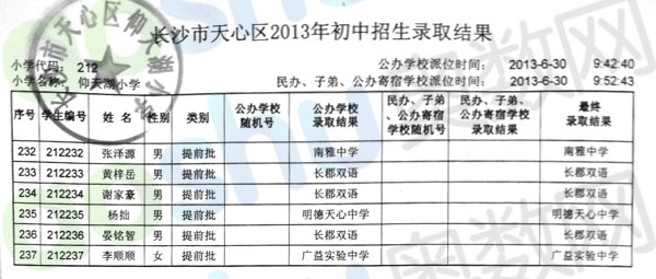 2013年长沙仰天湖小学小升初微机派位录取结果(9)