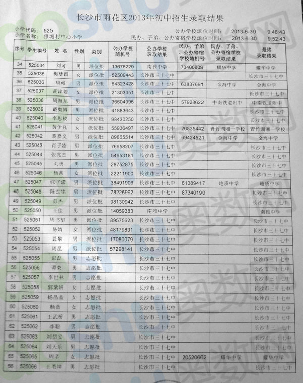 2013年长沙雅塘村中心小学小升初微机派位录取结果(3)