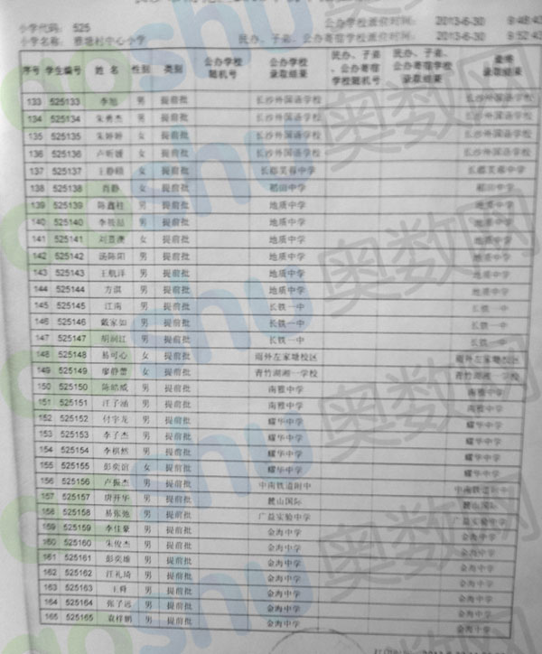 2013年长沙雅塘村中心小学小升初微机派位录取结果(6)