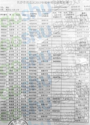 2013年长沙枫树山大桥小学小升初微机派位录取结果(2)