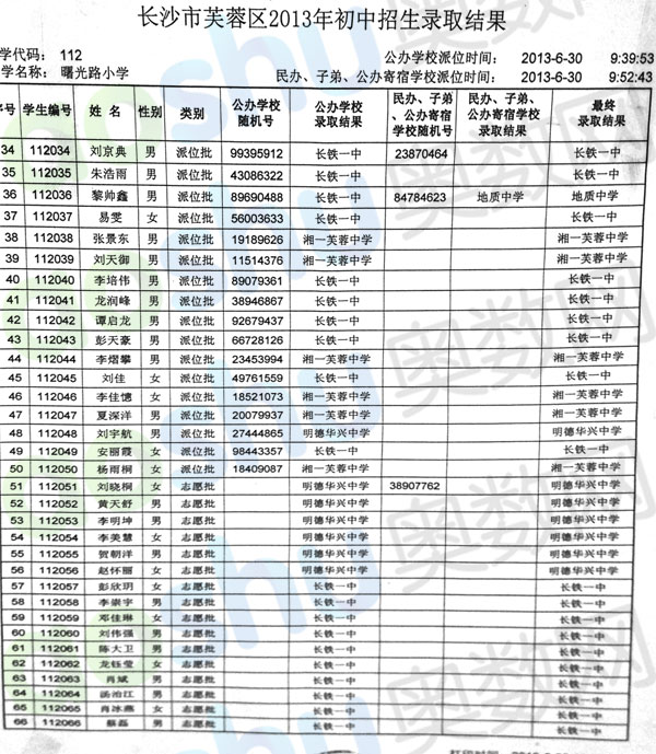 2013年长沙曙光路小学小升初微机派位录取结果(3)
