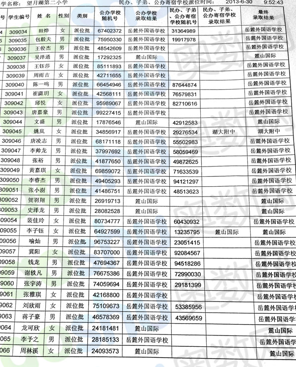 2013年长沙望月湖二小小升初微机派位录取结果(3)