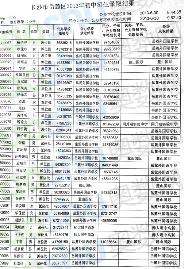 2013年长沙望月湖二小小升初微机派位录取结果(4)