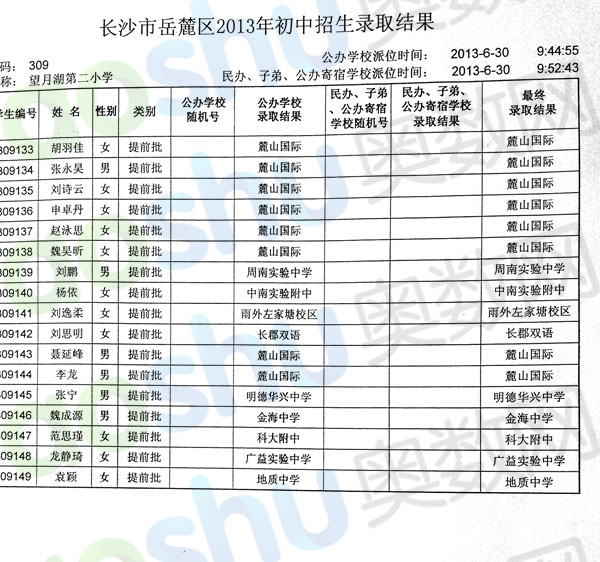 2013年长沙望月湖二小小升初微机派位录取结果(6)
