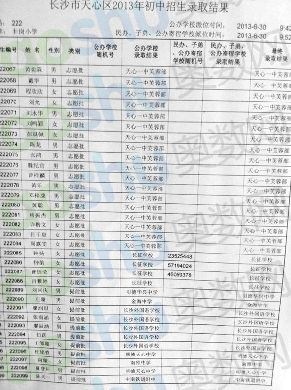 2013年长沙井冈小学小升初微机派位录取结果(4)