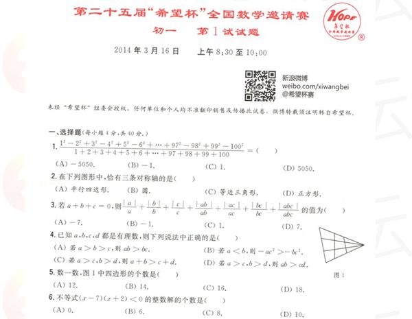 | 《第二十五届希望杯初一年级第一试试卷》 |