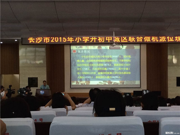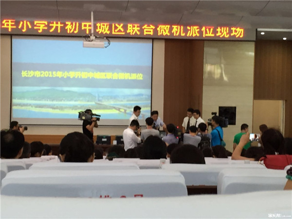 2015长沙小升初微机派位在周南梅溪湖中学进行~小编为大家进行现场直播!市政府领导、国防科大专家、公证处工作人员、家长代表等等进场。