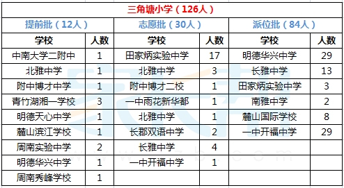 2015年长沙三角塘小学小升初微机派位结果