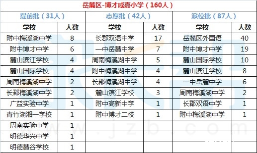 2015年长沙岳麓区博才咸嘉小学小升初微机派位结果