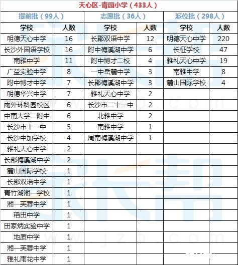 2015年长沙天心区青园小学小升初微机派位结果