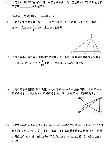 2016年第21届长沙华杯赛考前模拟题一(2)