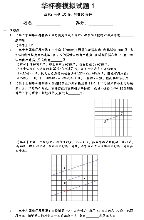 2016年第21届长沙华杯赛考前模拟题一(4)
