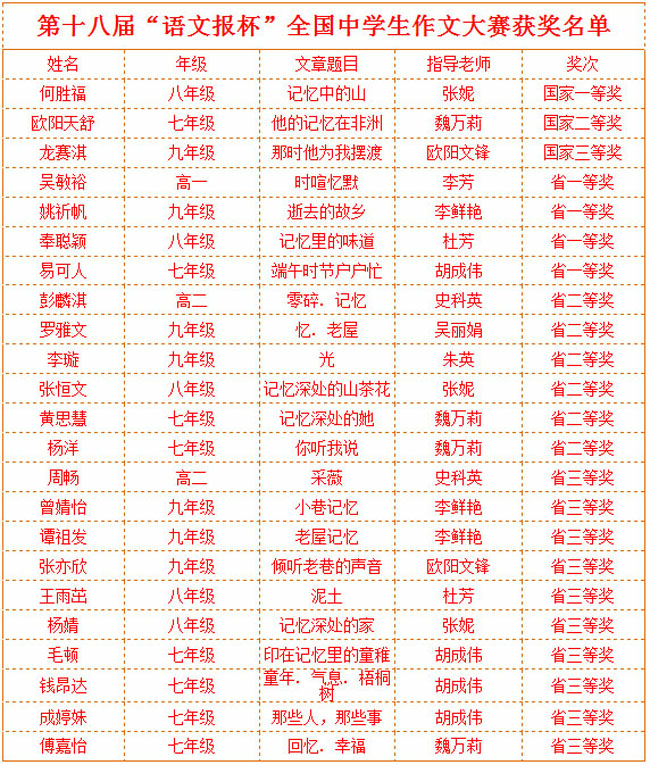 喜报:第十八届“语文报杯”全国中学生作文大赛怡雅中学喜获佳绩