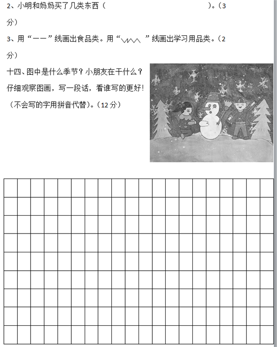 长沙小学一年级上册语文期末试题(五)(4)