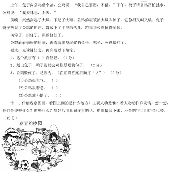 长沙小学二年级上册语文期末试题(一)(3)