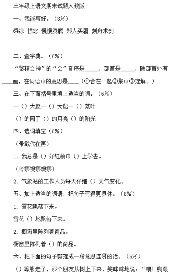 长沙小学三年级上册语文期末试题(二)