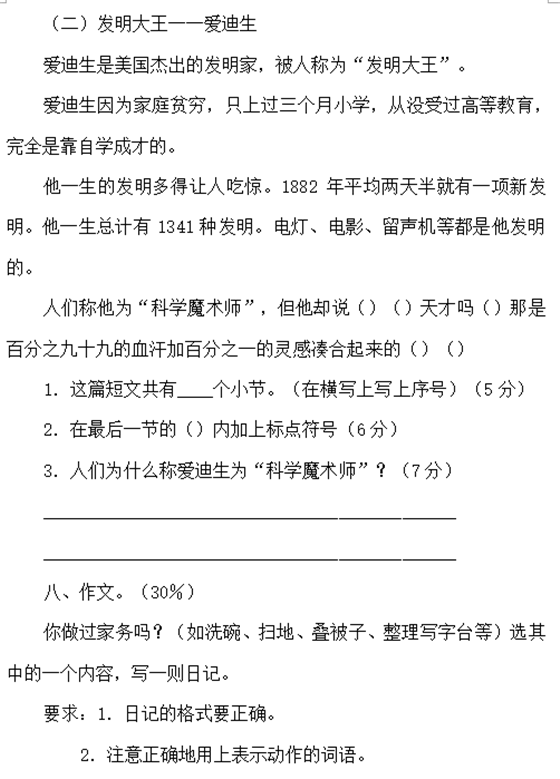 长沙小学三年级上册语文期末试题(二)(3)