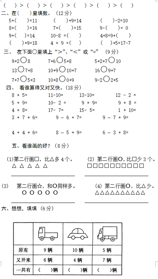 长沙一年级数学上册期末试题人教版(十)(2)