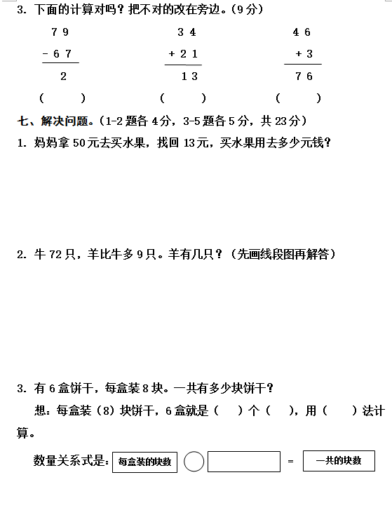 长沙二年级数学上册期末试题人教版(七)(4)