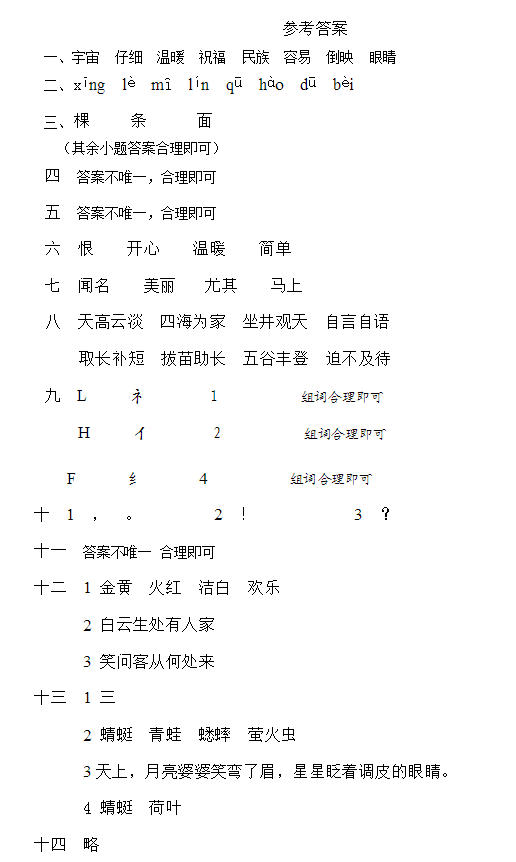 长沙小学二年级上册语文期末试题(八)(3)