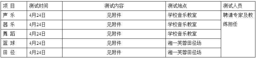 学校将严格按照长沙市教育局有关招生政策,在规定的时间内对特长生进行专业测试。