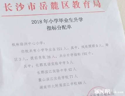 2018年长沙岳麓区枫林绿洲小学微机派位指标