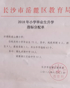 2018年长沙岳麓区洋湖街道山塘小学微机派位指标