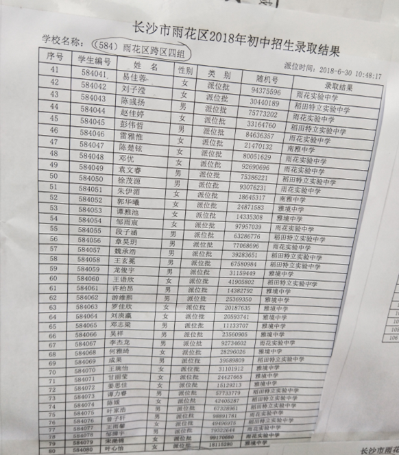2018年长沙雨花区微机派位跨区四组结果(2)