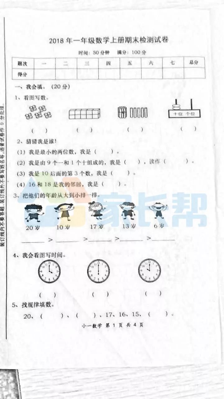 2018长沙一年级数学上册期末试卷