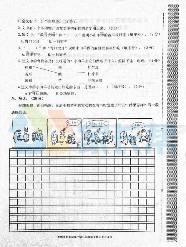 2018长沙芙蓉区二年级下学期期末语文试卷(4)