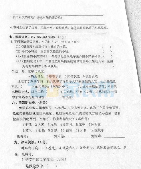 2018长沙开福区三年级下学期期末语文试卷(2)
