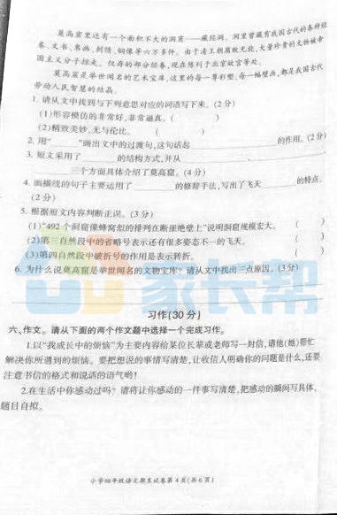 2018长沙芙蓉区四年级下学期期末语文试卷(4)