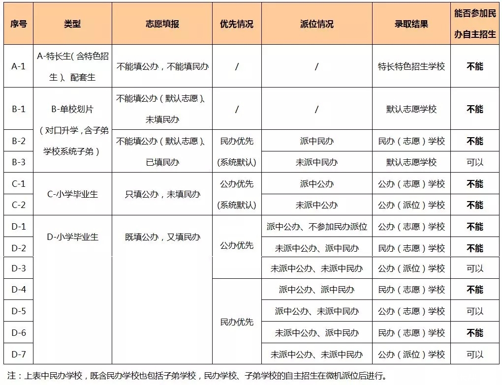 ⑤已被提前录取的特长生(含特色招生)、配套入学学生,不再参加微机派位和民办、子弟学校的自主招生。