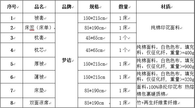 ⑥ 学校将为同学们提供校服以及寄宿生所需的床上用品,家长开学时到学校统一购买。床上用品全套750元,清单如下: