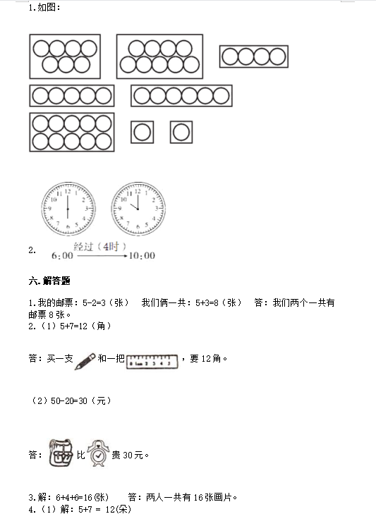 2021-2022学年人教版一年级上数学期末试题七(答案)(2)