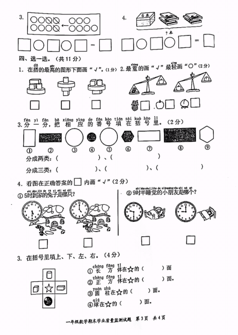 2021成都市大邑县一年级上册数学期末试卷(图片版)(3)