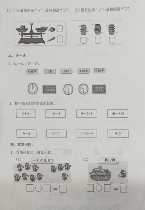 2021成都市温江区一年级上册数学期末试卷(图片版)(3)