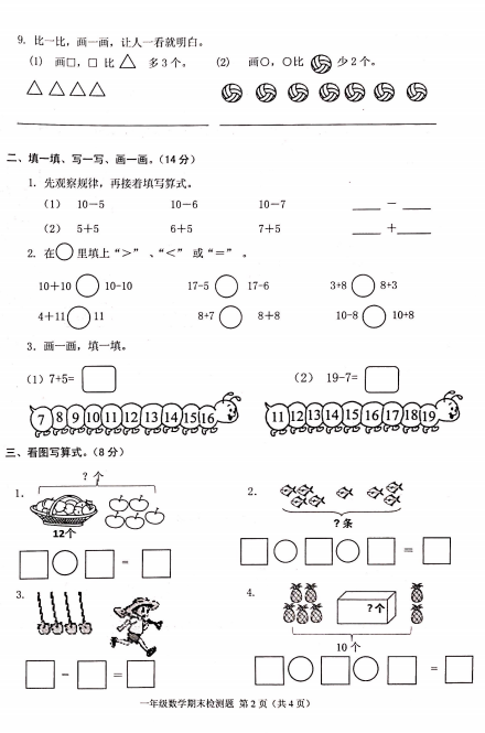 2021成都市青羊区一年级上册数学期末试卷(图片版)(2)