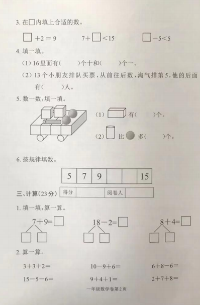 2021成都市龙泉驿区一年级上册数学期末试卷(图片版)(2)