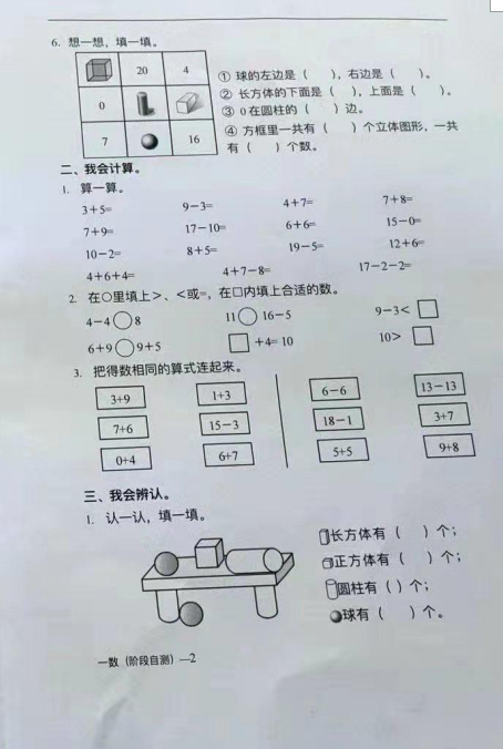 2021成都市锦江区一年级上册数学期末试卷(图片版)(2)
