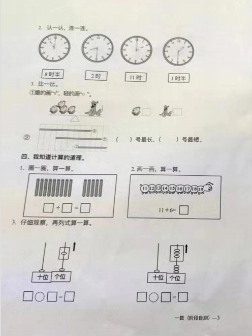 2021成都市锦江区一年级上册数学期末试卷(图片版)(3)